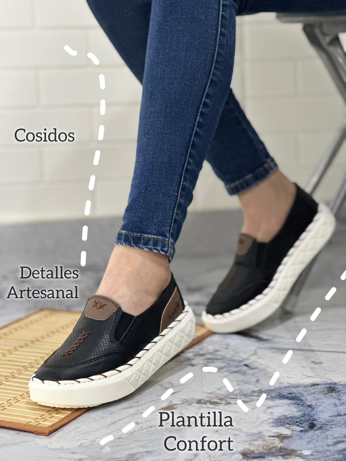 Este diseño captura la esencia del trabajo hecho a mano con su meticuloso detalle y materiales de alta calidad. Cada par es único en su diseño y textura, su suela flexible garantiza durabilidad y confort, mientras que el elegante acabado y los pequeños detalles añaden un toque de distinción a cualquier conjunto.