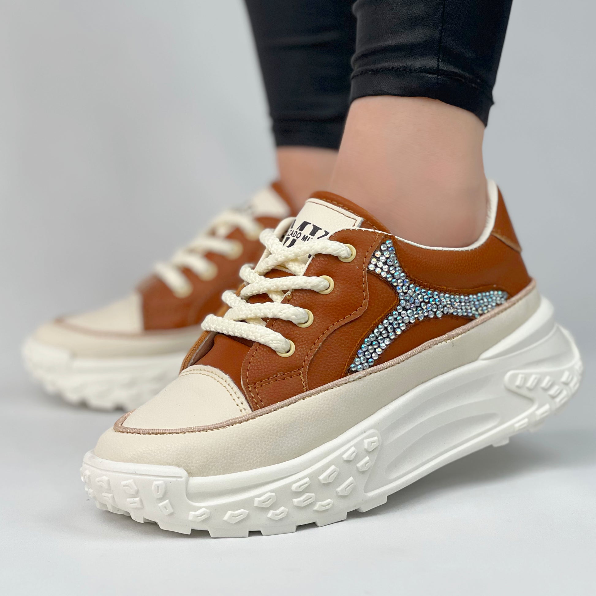 Este zapato deportivo no solo es una elección práctica, sino también una declaración de moda que resalta el estilo personal con un toque de brillo.